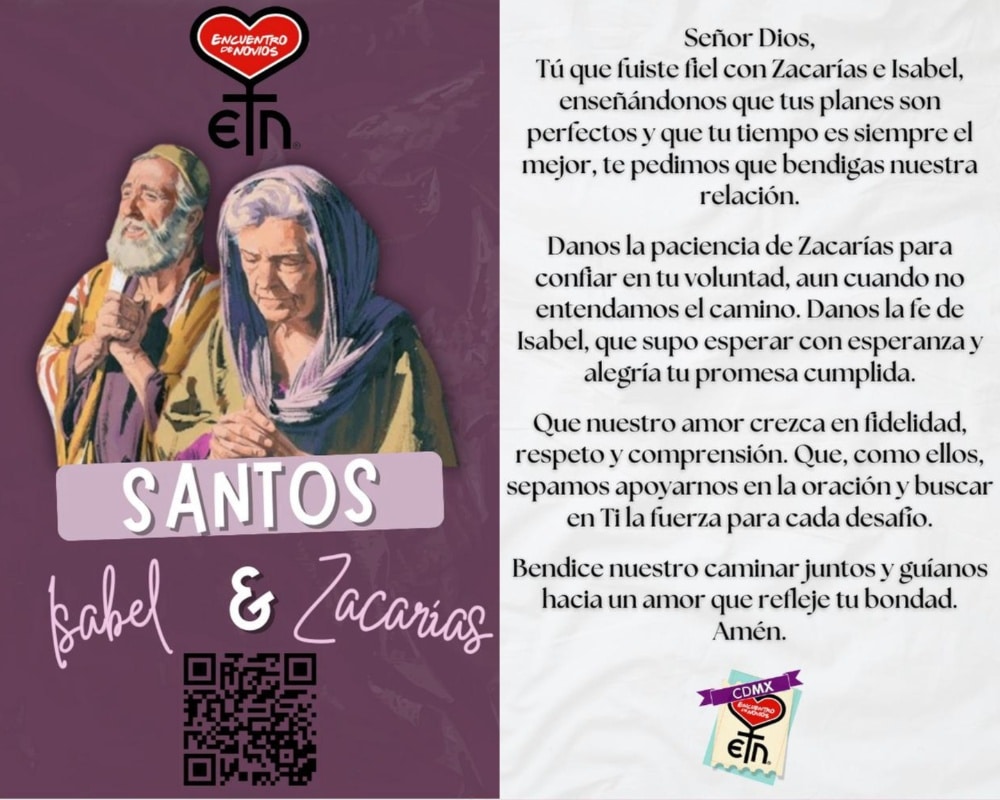 Los coordinadores eclesiales del Encuentro Católico de Novios CDMX, comentó que durante el recorrido que realizarán por la calle peatonal de Madero, en el Centro Histórico, a las parejas que se encuentren les regalarán una tarjetita tamaño cartera con la imagen de Santa Isabel y Zacarías con una oración invocándolos para que los ayuden a perseverar en su relación.