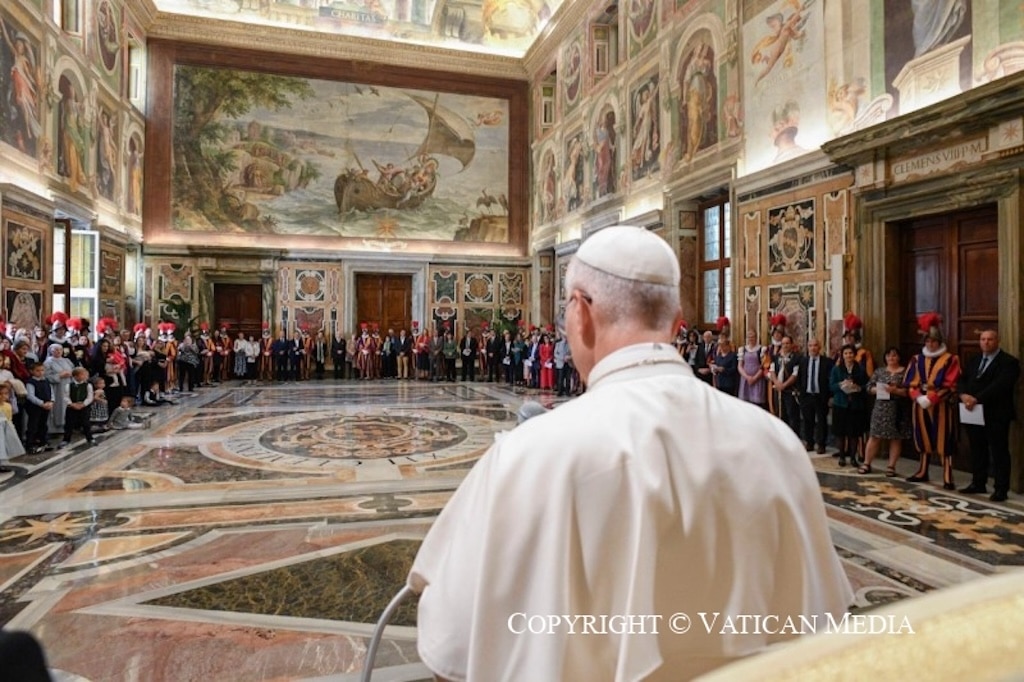 De la misma manera, en el evento realizado el 3 de octubre de 2025 en la Sala Clementina del Palacio Apostólico, el Santo Padre invitó a los nuevos reclutas a entrar “en la escuela de Cristo humilde y obediente”, a ser misioneros de la esperanza, a atreverse y “contribuir juntos a la civilización del amor”.
