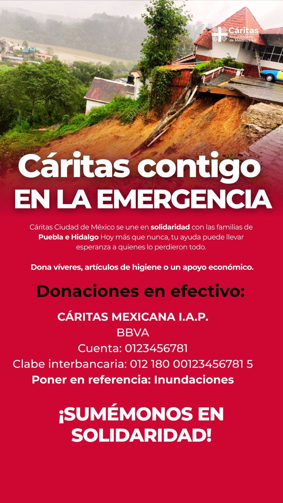 De igual manera, Cáritas Mexicana activó una colecta de emergencia para brindar apoyo humanitario a las comunidades más afectadas por las recientes contingencias. Cada donación suma para llevar alimentos, agua, ropa y acompañamiento a quienes más lo necesitan.