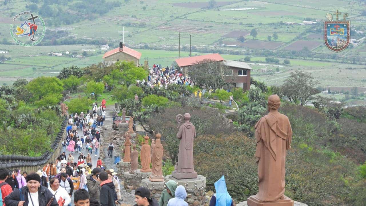 El recorrido hasta la cima del cerro es un símbolo del camino que recorren los migrantes. A lo largo de la Calzada de los Santos, que reúne las imágenes de los patronos de las 29 comunidades locales, los peregrinos avanzan rodeados de signos de devoción, culminando en una plaza donde ondean las banderas del Vaticano y de Estados Unidos.