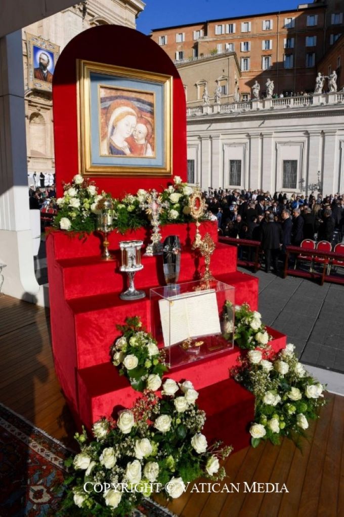 Durante el rito, las reliquias de cada uno de ellos fueron colocadas junto al altar, bajo los pies de la imagen de Nuestra Señora del Buen Consejo, en signo de comunión y veneración.